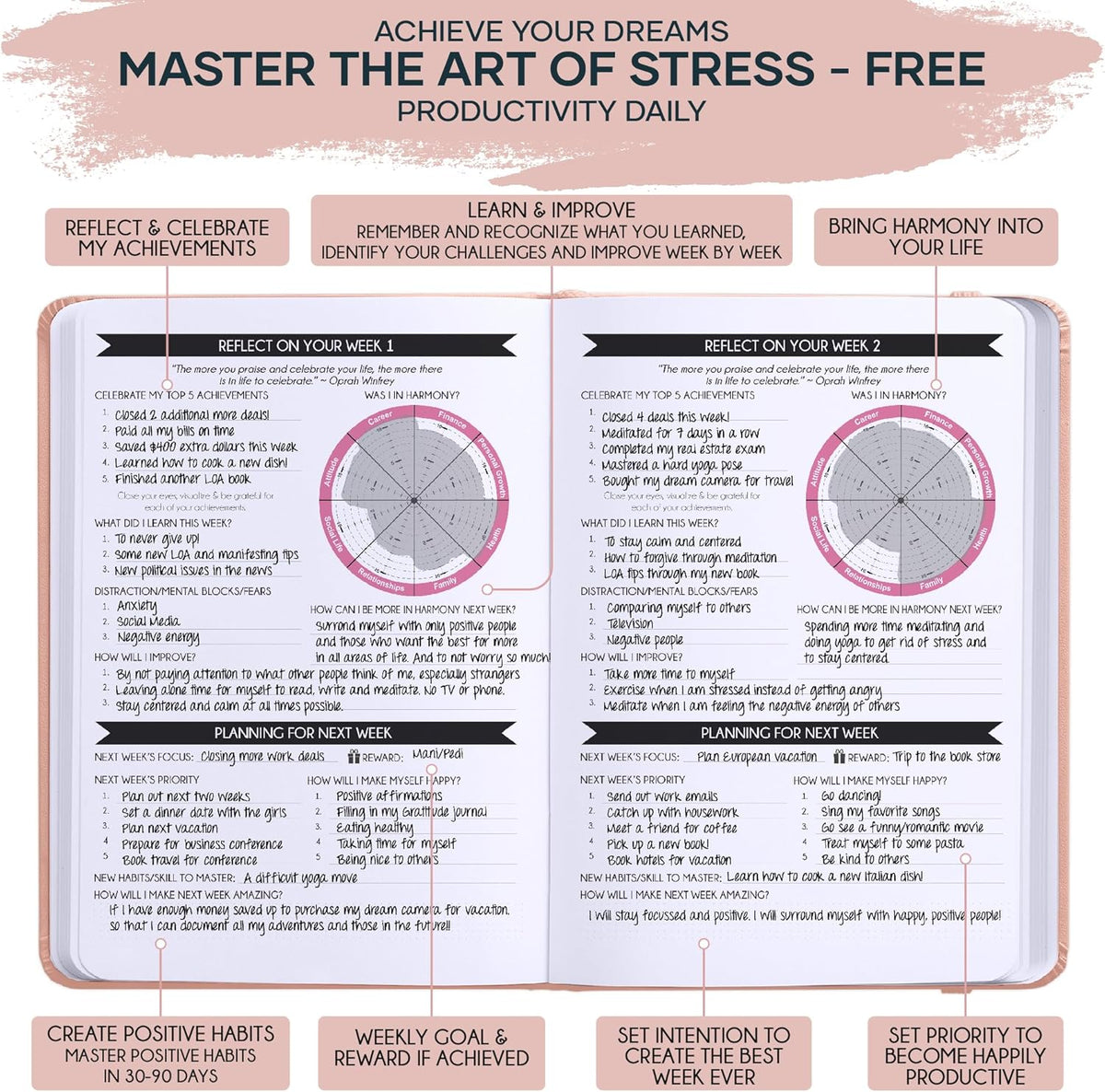 This Self Care Journal is crafted for both men and women. Whether you are an entrepreneur, student, or professional, the 100% eco-friendly design and scientific productivity principles work universally. It is the ultimate tool for anyone with a burning desire to turn their dreams into reality.